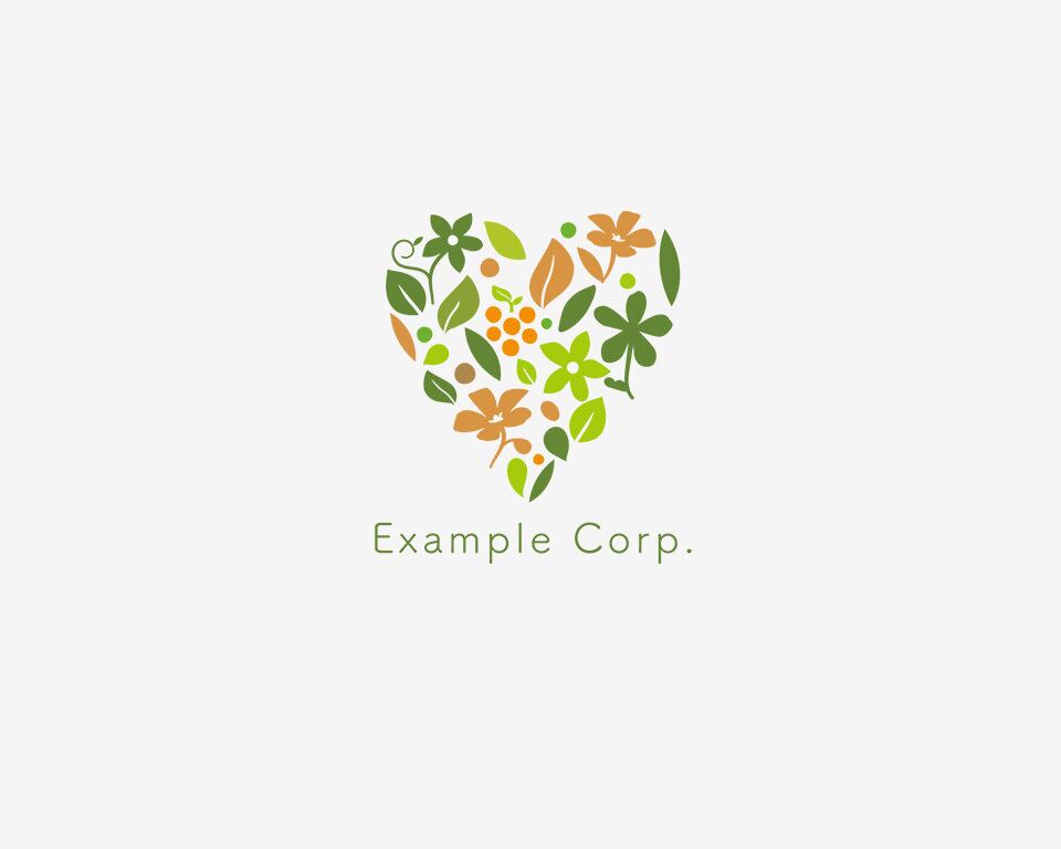 瑞々しい葉をハート型に配置したナチュラルでフェミニンなロゴ。自然のやさしさと愛を同時に感じさせるデザインで、オーガニック商品やライフスタイルブランドにぴったりです。