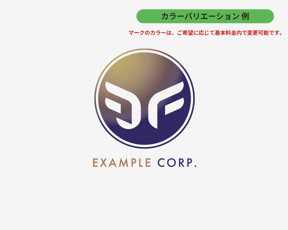 厳選されたプリメイドロゴをベースに、あなたのビジネス名・サービス名を組み込んだオリジナルロゴをお届けします。