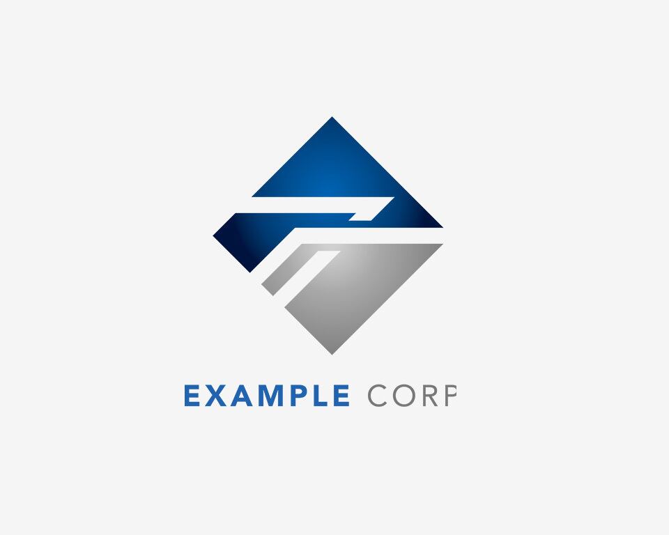 青とシルバーのコントラストが印象的な、シャープで洗練されたロゴです。斜めに配置された四角形と、そこを力強く貫くようなラインが、革新性や先進性、そして安定感を表現しています。未来に向かって突き進むような、信頼できるイメージを与えます。