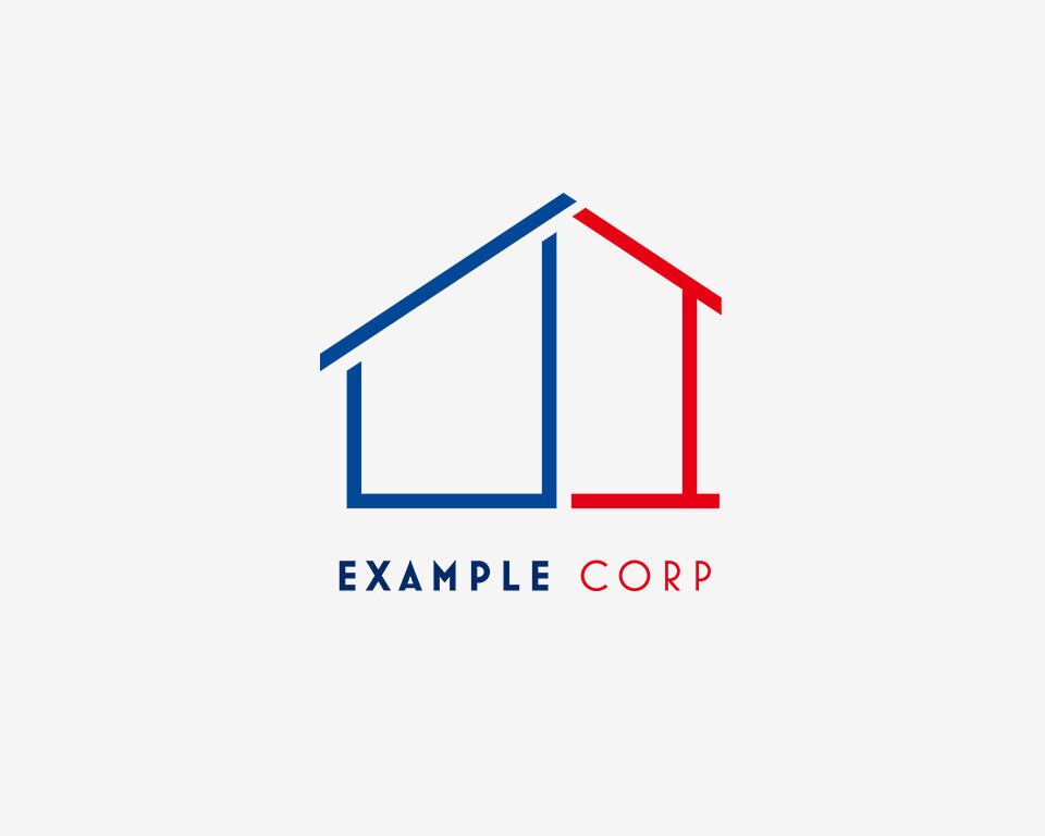 青と赤のコントラストが目を引く、シンプルながらも印象的な住宅のロゴです。二つの家が寄り添うようなデザインは、安心感や繋がり、そして温かい家庭を想起させます。すっきりとしたラインが、信頼性と誠実さを感じさせます。
