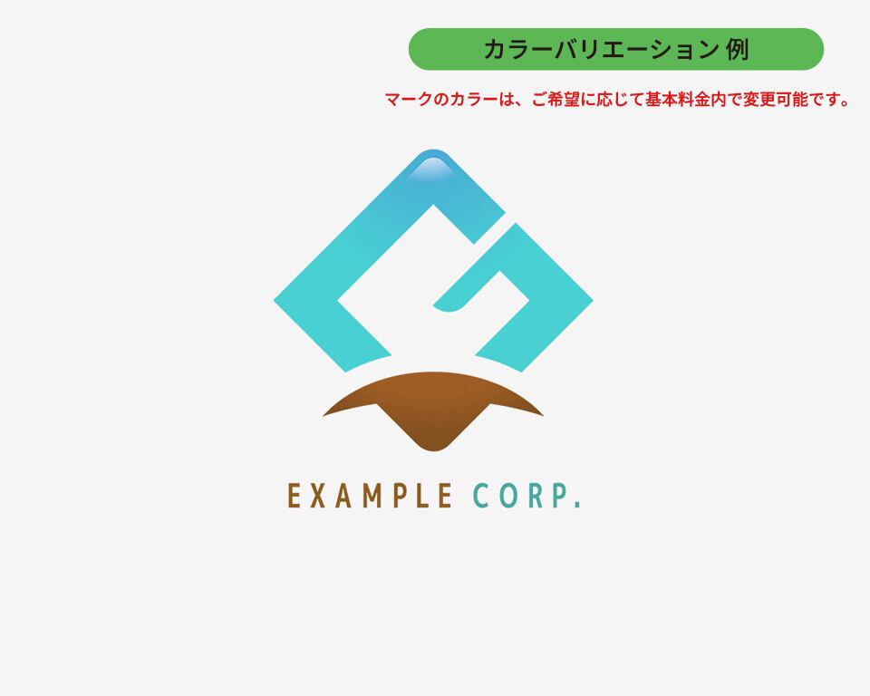 シャープな角度で構成された「C」と「G」を連想させるデザインと、安定感のある青いベースが特徴的なロゴです。赤からオレンジへのグラデーションは情熱とエネルギーを、青は信頼性と安定感を表しています。未来に向かって発展する力強さと、確固たる基盤を持つ印象を与え、貴社のブランドに 活力と安心感をもたらします。