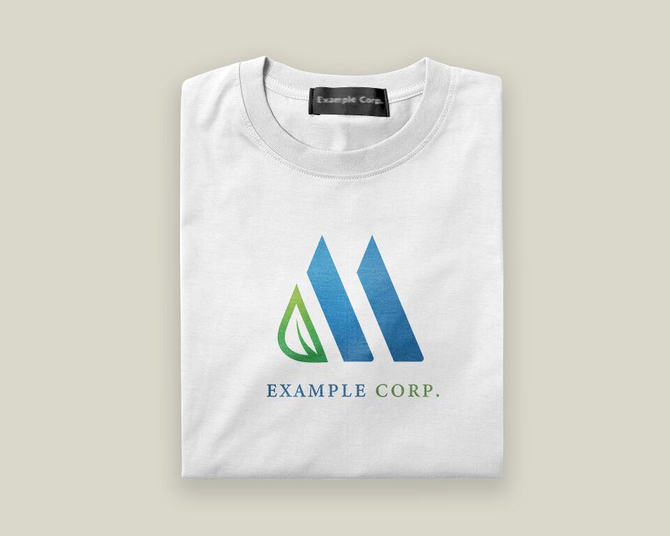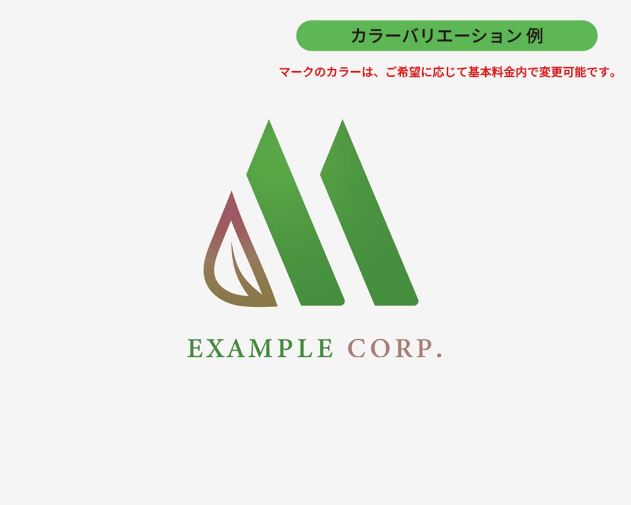 青い空に向かって力強く伸びる二つの山脈と、その麓で瑞々しく成長する葉をモチーフにしたロゴです。自然の力強さと生命の息吹を感じさせ、未来への発展と成長を表現しています。環境に配慮しながらも、頂点を目指す企業の姿勢を力強くアピールします。