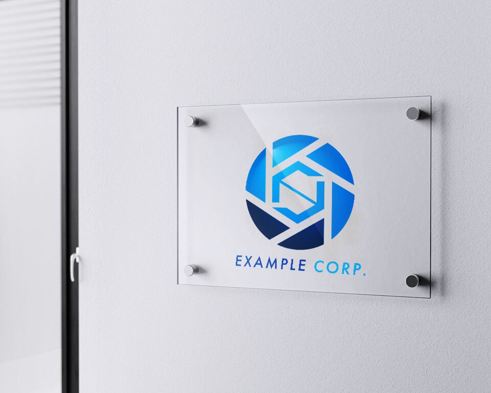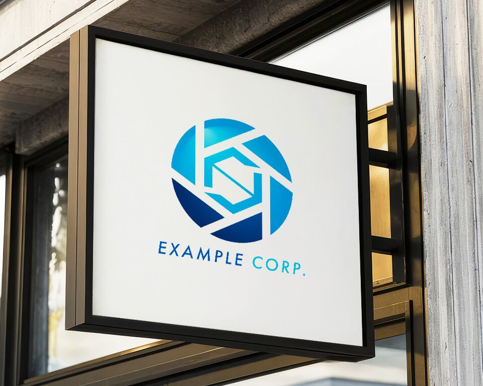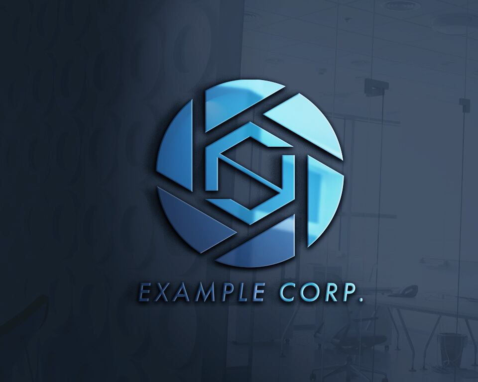 青の濃淡で表現された、カメラの絞りのような形状と中心の六角形が印象的なロゴです。精密さや集中、多角的な視点を表現しています。革新的な技術と緻密な分析力を持つ企業や、多様なニーズに対応する事業に最適です。