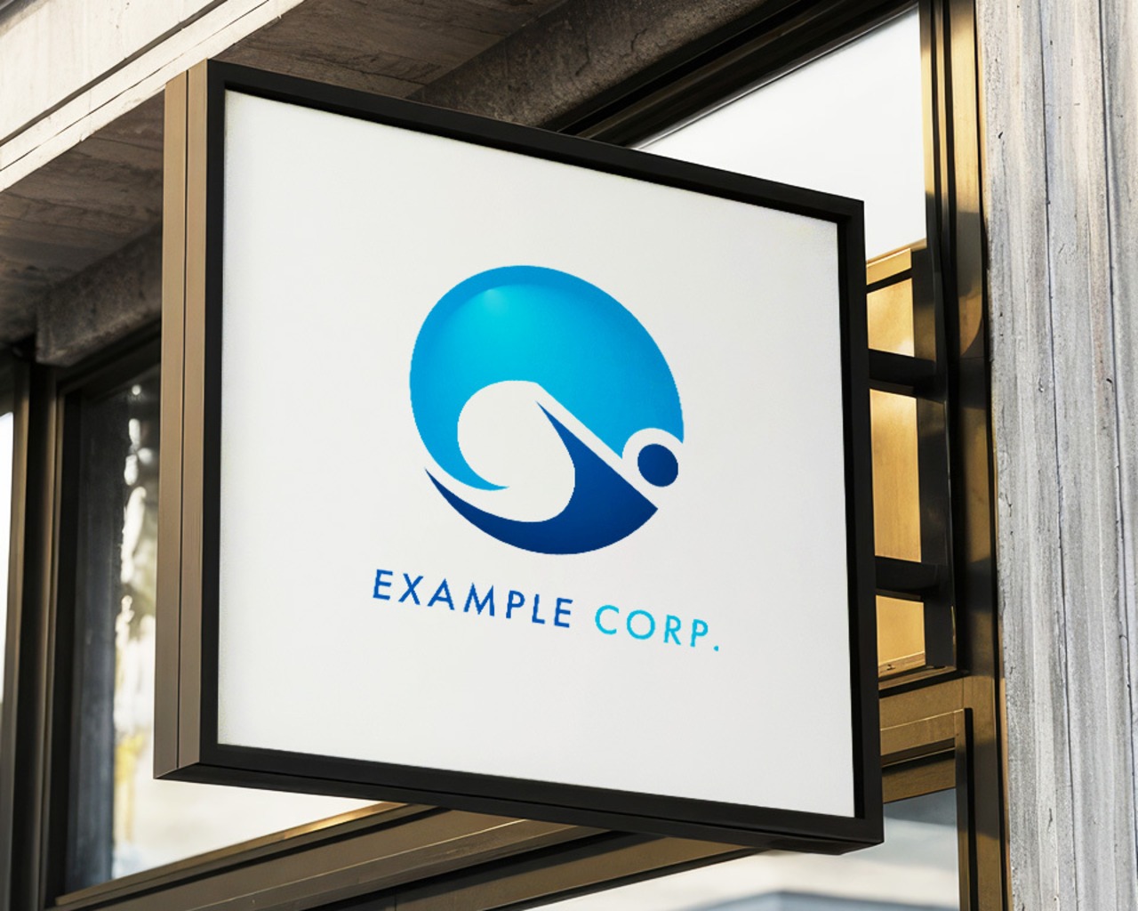 鮮やかなブルーの三日月が地球を包み込むような、優しくもダイナミックなロゴです。グローバルな視点と、成長し続ける可能性を感じさせます。国際的な事業展開を目指す企業や、人々に寄り添うサービスを提供する事業に最適です。