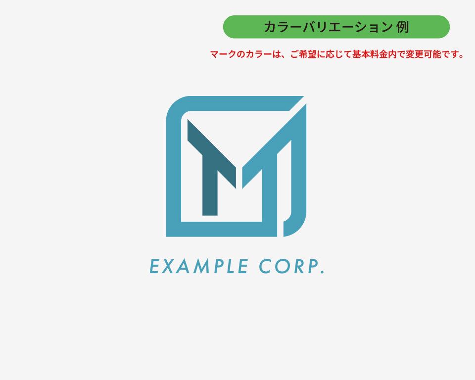 温かみのあるオレンジ色で囲まれた、力強い「M」の文字が印象的なロゴです。安定感のある四角形と、シャープな「M」の組み合わせは、信頼性と革新性を表現しています。堅実でありながらも、常に新しいことに挑戦する企業に最適です。