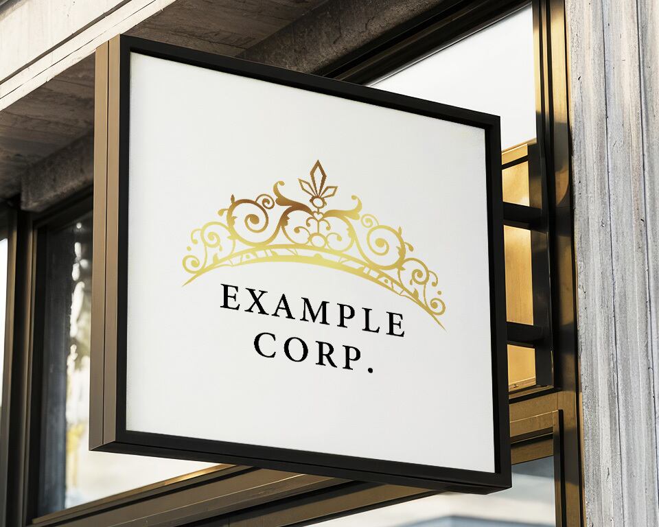 輝くゴールドで繊細に描かれた、美しいティアラのロゴです。優雅さと気品、そして特別な存在感を放ちます。高品質で洗練された商品やサービスを提供する企業、または女性をターゲットとした事業に最適です。