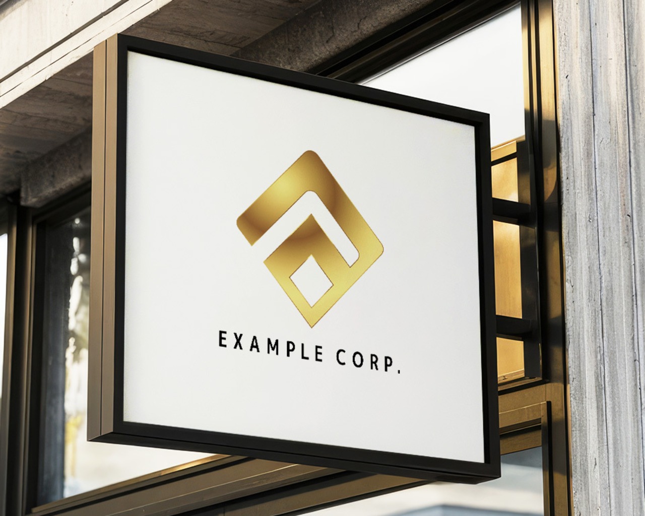 輝くゴールドで表現された、入れ子状の四角形が特徴的なロゴです。安定感と奥深さ、そして繋がりを感じさせます。多層的なサービスや、様々な分野で活躍する企業に最適です。
