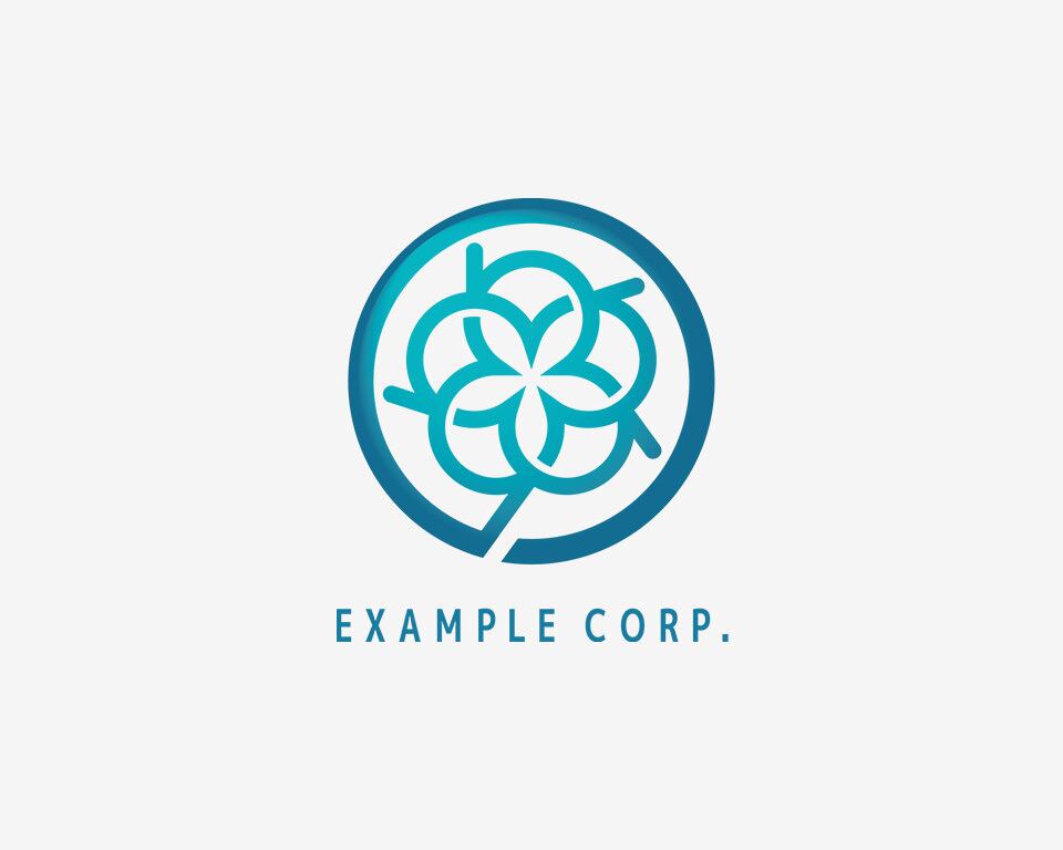 鮮やかなターコイズブルーで描かれた、花のような有機的な形状が円の中に調和して配置されたロゴです。繋がりや成長、そして自然の美しさを感じさせます。人々の繋がりを大切にする事業や、自然や健康に関わる企業に最適です。