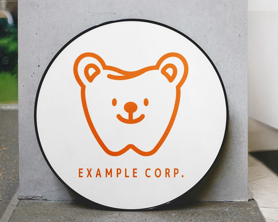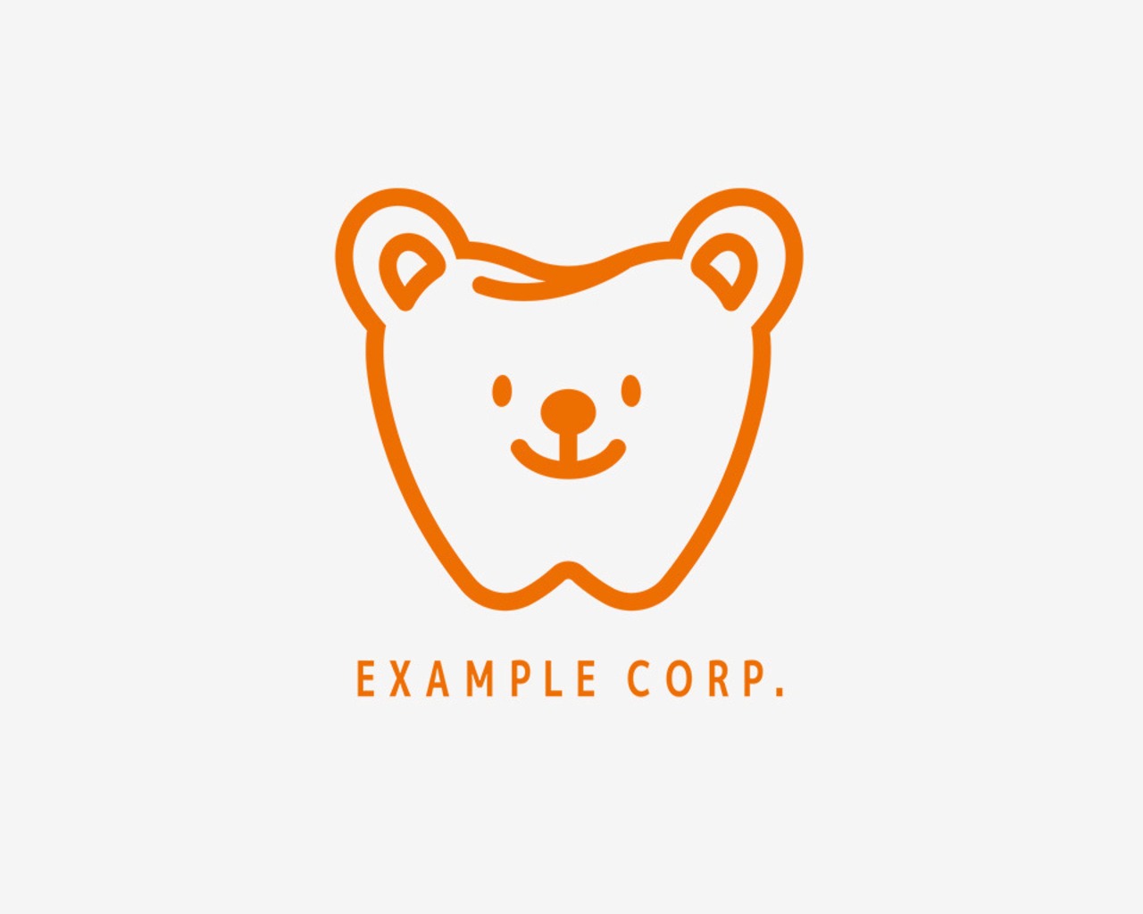 オレンジ色の優しい線で描かれた、笑顔のクマのロゴです。よく見ると、口元は可愛らしい歯の形をしています。親しみやすさと、健康的なイメージを同時に表現しています。子供向けの商品やサービス、または歯科関連の事業に最適です。