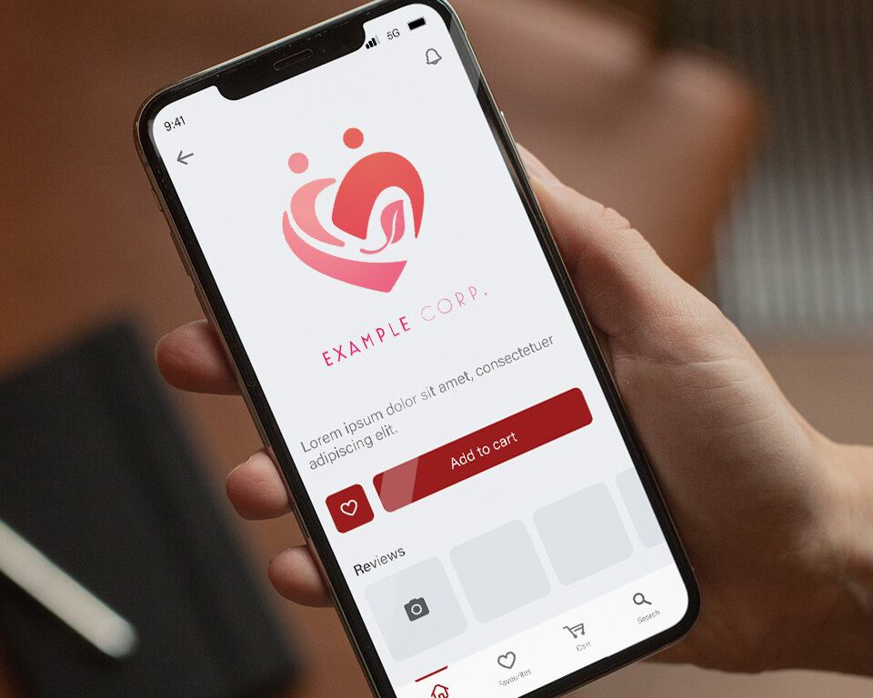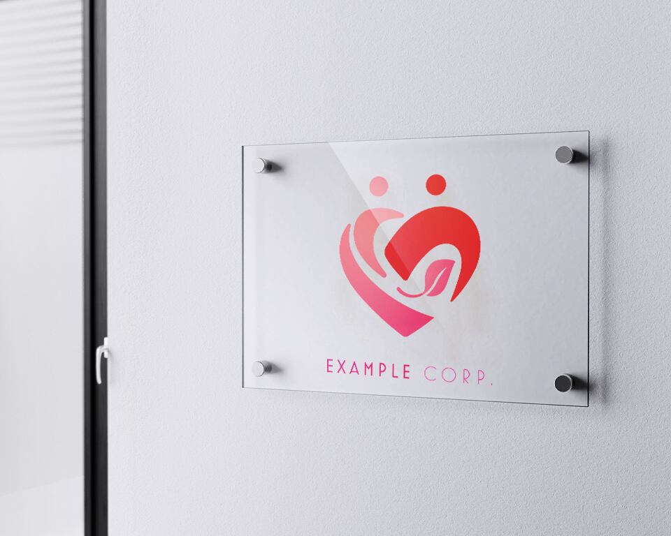 ピンクからオレンジのグラデーションで描かれた、二人が優しく抱き合うようなハート形のロゴです。中央には小さな葉が添えられ、愛情と成長、そして自然の恵みを感じさせます。人との繋がりや温かさを大切にする企業や団体、癒しや健康に関わる事業に最適です。