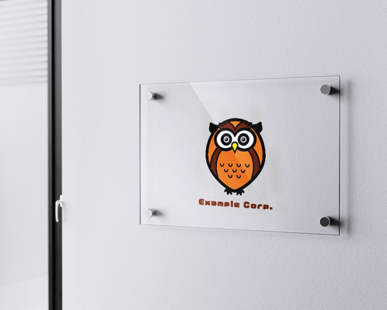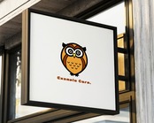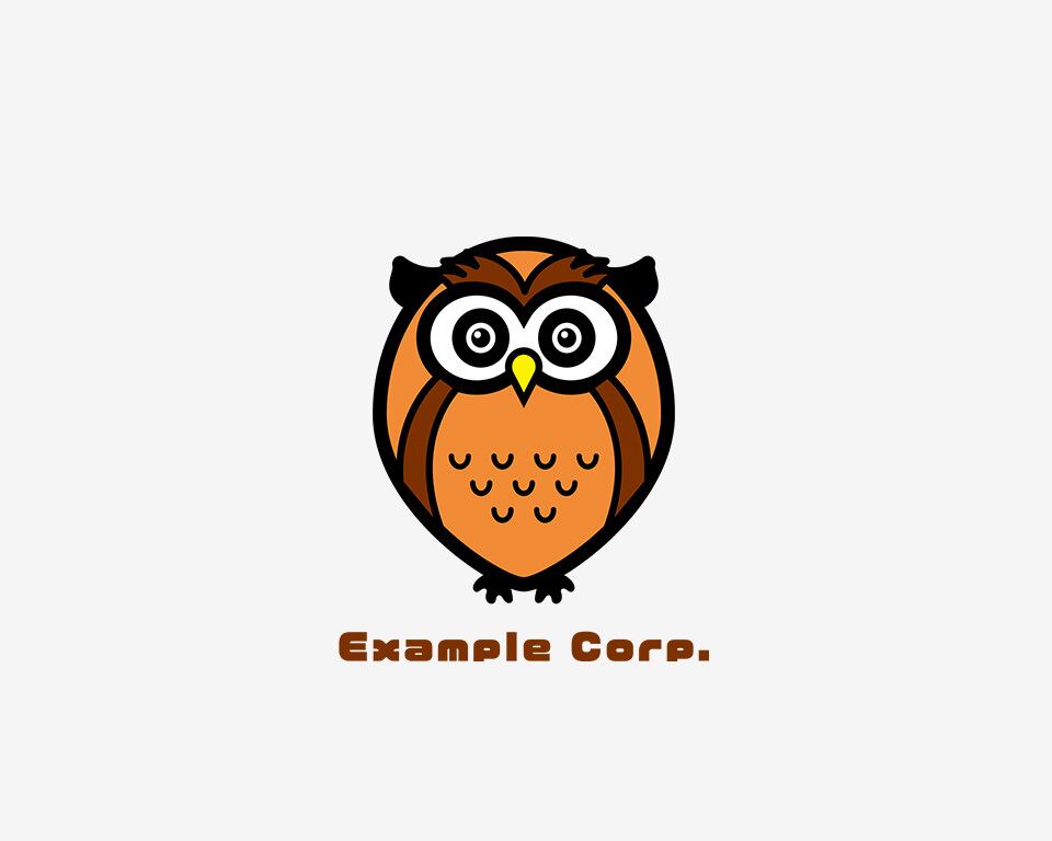 大きな丸い瞳と愛らしい表情が特徴的な、オレンジと茶色のフクロウキャラクターロゴ。丸みを帯びたフォルムとシンプルなデザインが、親しみやすさと知的な印象を与えます。教育関連や知的なサービス、子供向け事業など、幅広い分野で活用できるデザインです。
