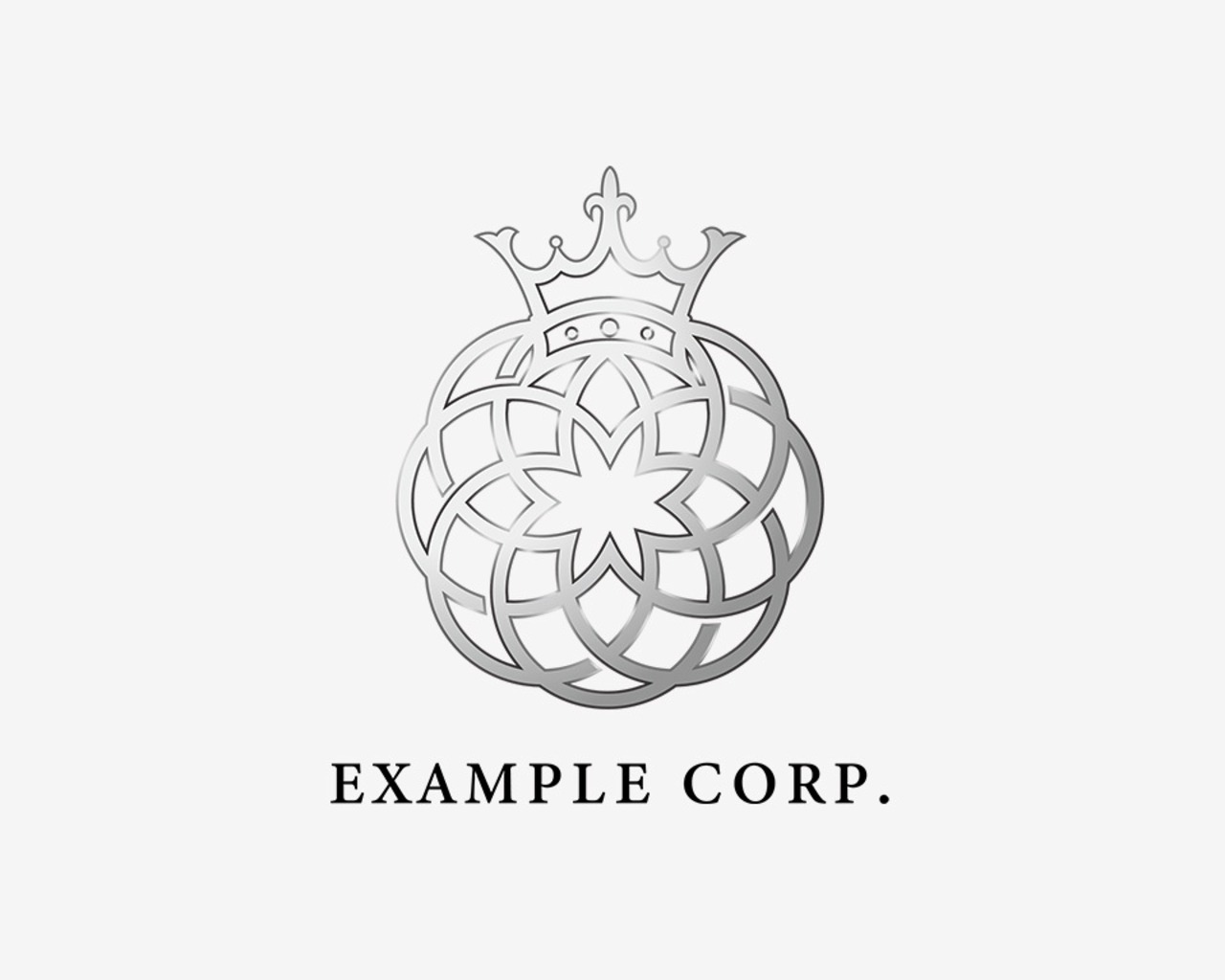 精緻なラインで描かれた幾何学模様の中心に星が輝き、その上に王冠が鎮座する、気品あふれるエンブレムロゴ。シルバーの繊細な輝きは、洗練された印象と高い品質を象徴します。伝統と格式を感じさせつつも、モダンな雰囲気も併せ持ち、高級感や信頼性を重視する企業やブランドに最適です。