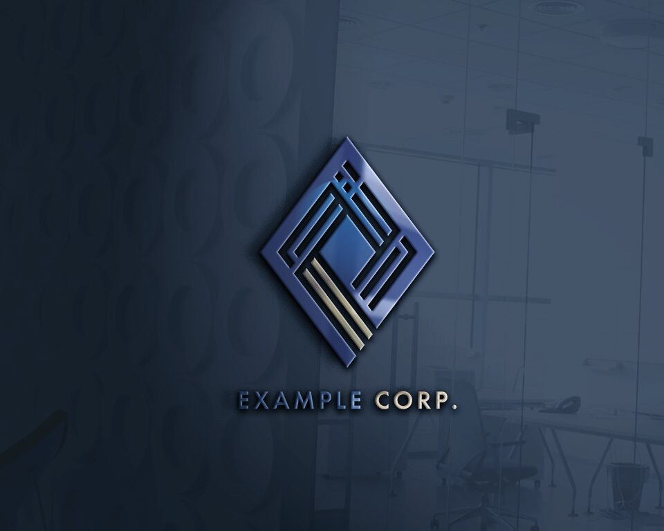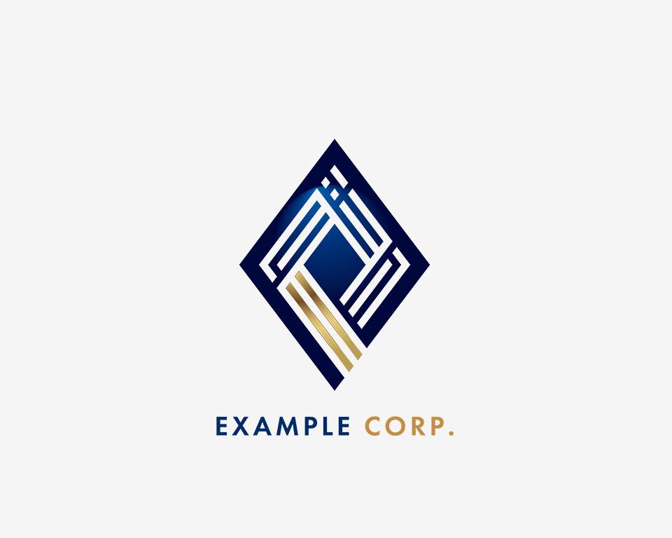 深いネイビーブルーとメタリックゴールドのストライプが印象的な菱形エンブレムロゴ。中央に向かって集まるラインは、集中と求心力を表現し、洗練されたモダンな印象を与えます。信頼感と高級感を併せ持ち、専門性の高い分野や上質なサービスを提供する企業に最適です。