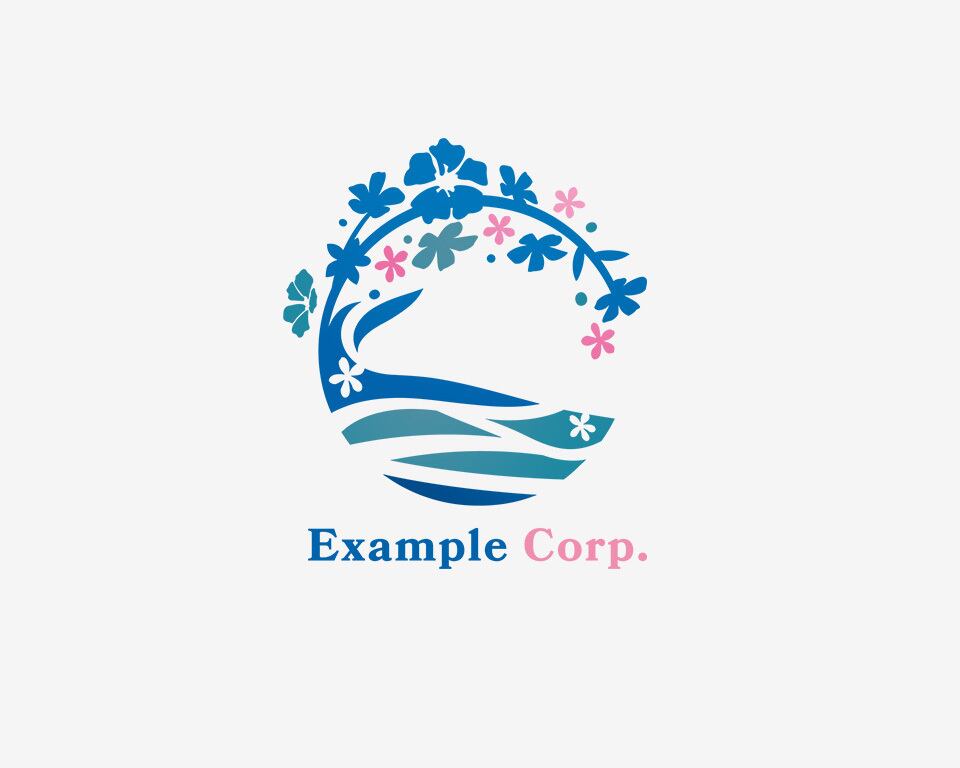 青色の水面と、その上に咲き誇るピンクや水色の花々を組み合わせた、優美で自然な印象のロゴです。水面の穏やかな流れと、花の生命力が調和し、安らぎと成長を感じさせます。自然や癒し、美容関連の事業に最適なデザインです。