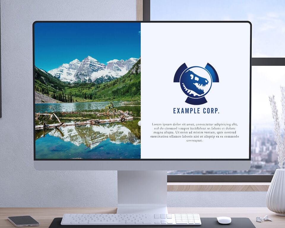 円形の中に配置された恐竜の頭蓋骨のシルエットは、力強さと古代の神秘的な魅力を表現しています。特徴的な形状と青のグラデーションは、見る人にインパクトを与え、記憶に残るブランドイメージを創出します。冒険心や探求心を刺激するデザインは、エンターテイメントや科学技術関連の企業に最適です。