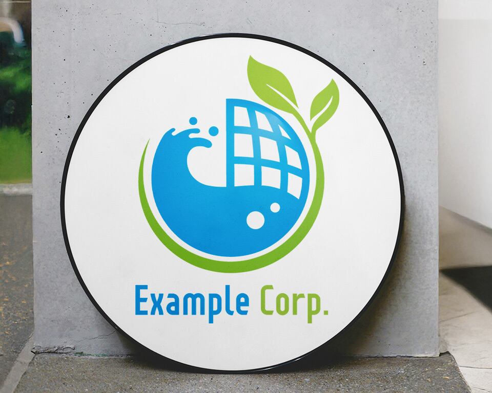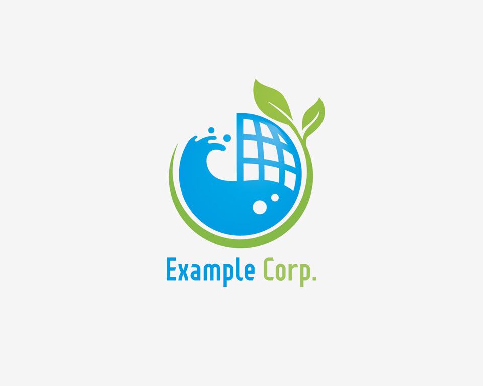 青い地球とそれを包み込む緑の曲線、そして伸びゆく葉が、自然との共生や環境への配慮を表すロゴです。水と緑のコントラストが、清らかで持続可能なイメージを与えます。地球環境保護に取り組む企業や、オーガニック製品、自然エネルギー関連の事業に最適です。