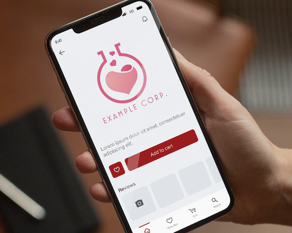 ピンクのフラスコの中に、濃いピンクのハートと小さなハートが浮かぶデザインは、愛情や優しさと、科学的な探求心や実験的なイメージを融合させています。ユニークで記憶に残るデザインは、美容・健康関連の研究機関や、愛情を込めた製品開発を行う企業に最適です。