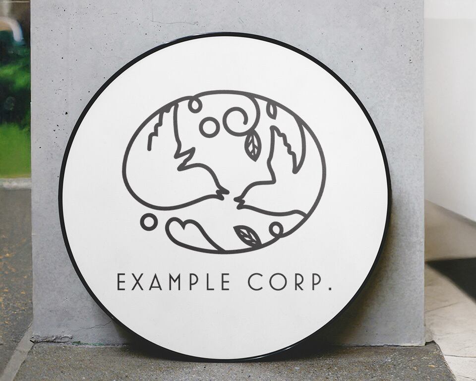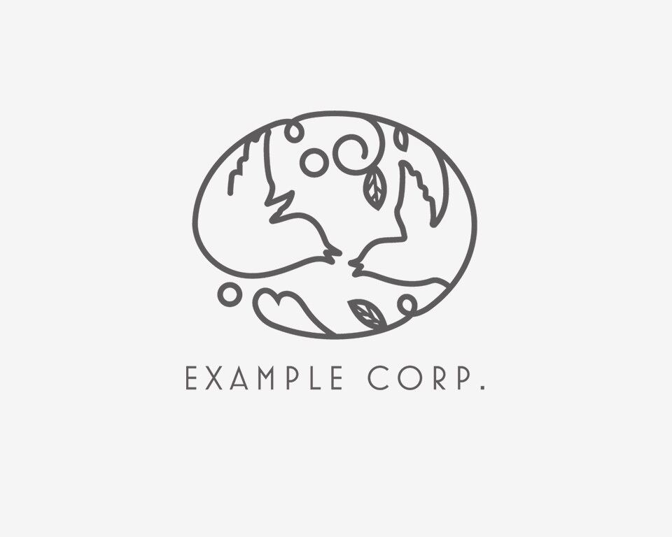 丸いシルエットの中に、向かい合う二羽の鳥と葉が繊細な線で描かれたロゴは、自然の優しさや繋がり、調和を表しています。穏やかでオーガニックな印象は、安心感と親しみやすさを与えます。自然食品関連、オーガニック製品、環境保護に取り組む企業に最適です。