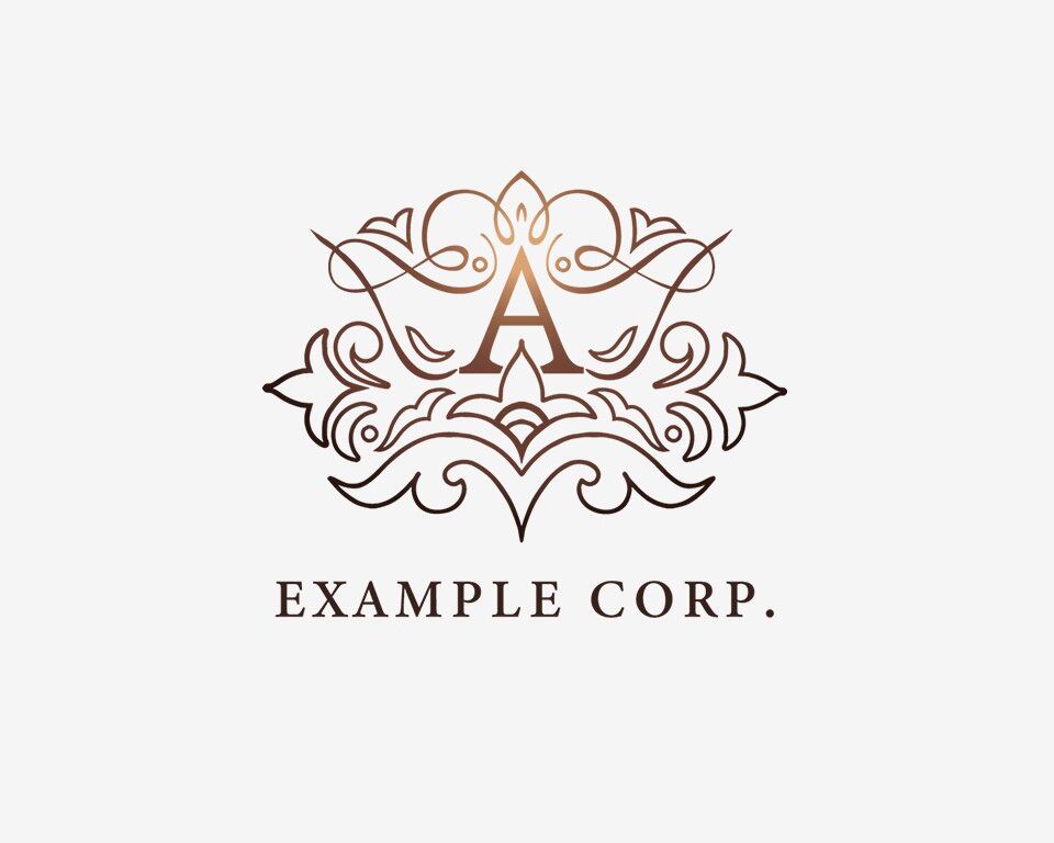 繊細な曲線で装飾されたAの文字を中央に配したモノグラムロゴは、優雅さ、伝統、そして洗練された美しさを表現しています。メタリックなブラウンの色合いが、高級感と落ち着いた印象を与えます。高級ブランド、ホテル、士業など、信頼と格式を重んじる分野に最適です。