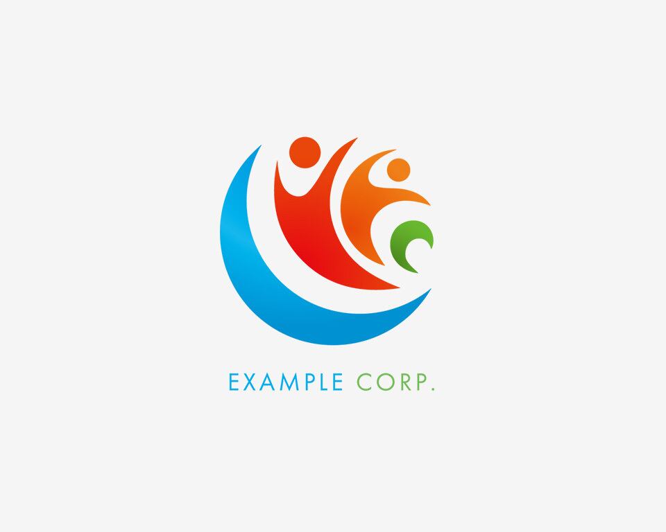 青い円弧に包まれ、赤、オレンジ、緑の三人の人物が手を繋ぎ、上に向かって伸びるようなデザインは、繋がり、協力、そして成長を象徴しています。明るくポジティブな色彩は、希望と活力を与え、多様な人々との連携を表します。