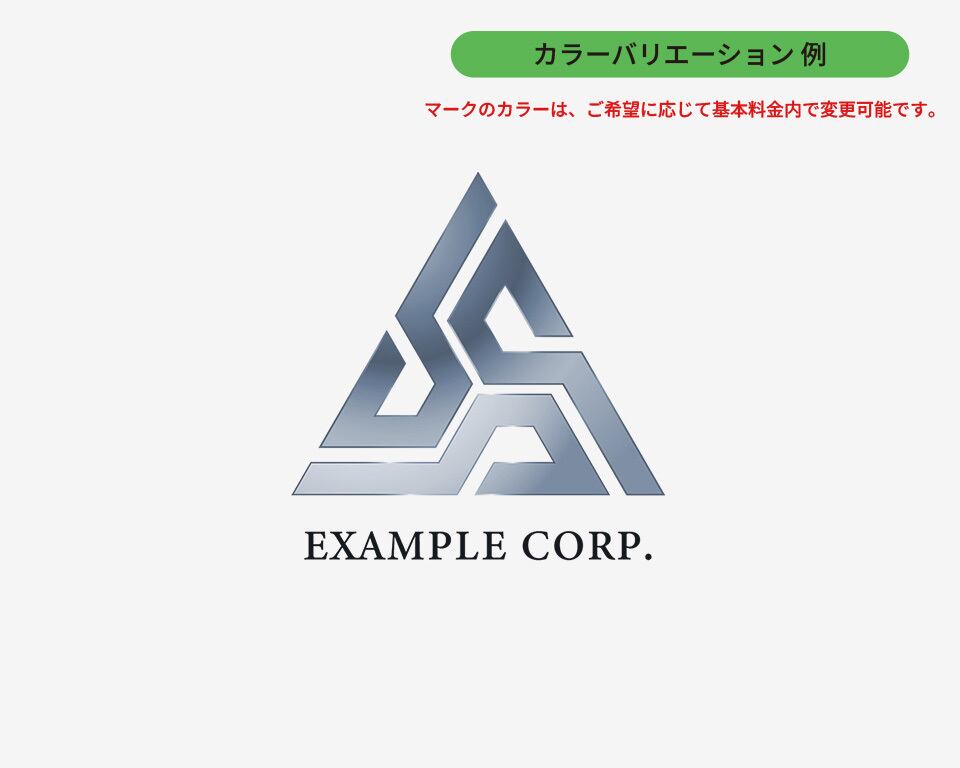 ゴールドとシルバーのメタリックな質感が際立つ三角形を組み合わせたロゴは、頂点を目指す力強さ、洗練された輝き、そして安定感を表現しています。シャープな形状は、先進性やプロフェッショナルな印象を与えます。