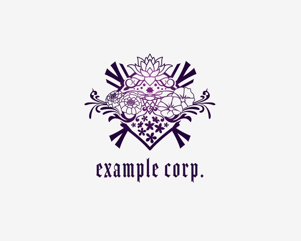 紫色の濃淡で緻密に描かれた花々、装飾的な曲線、そして幾何学的なモチーフが組み合わさったロゴは、エレガントで洗練された美しさを表現しています。繊細なデザインは、上品さや特別な価値を感じさせます。