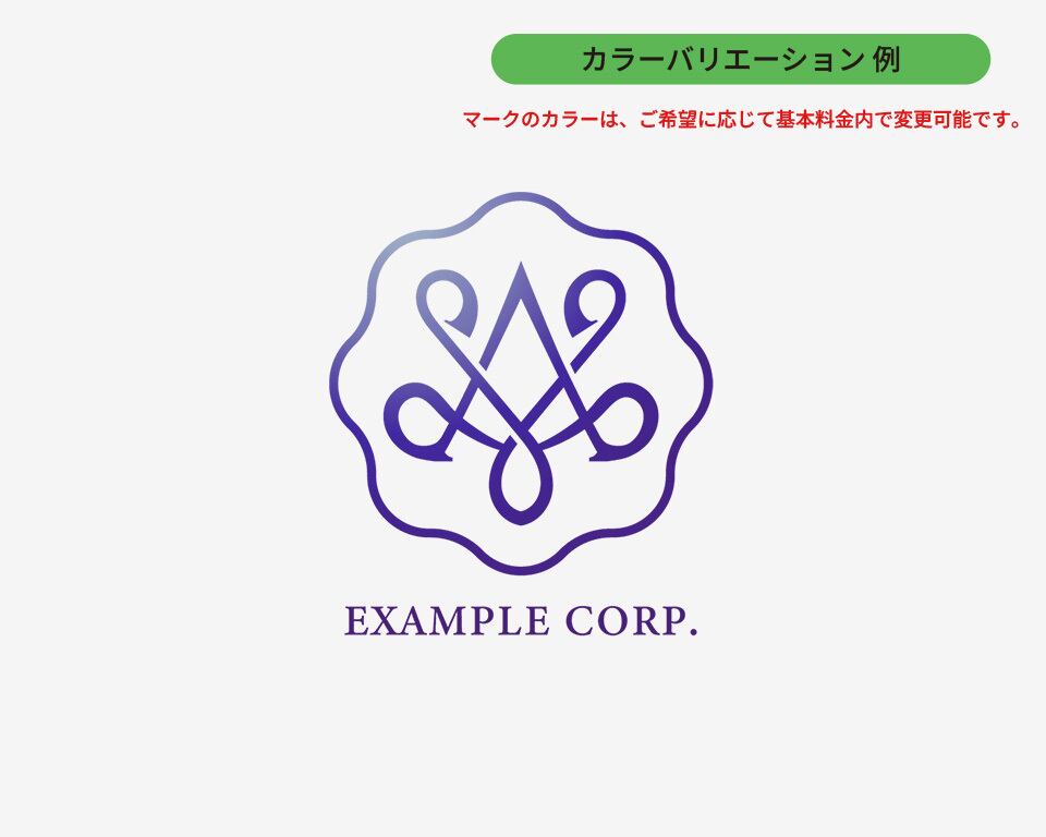 厳選されたプリメイドロゴをベースに、あなたのビジネス名・サービス名を組み込んだオリジナルロゴをお届けします。