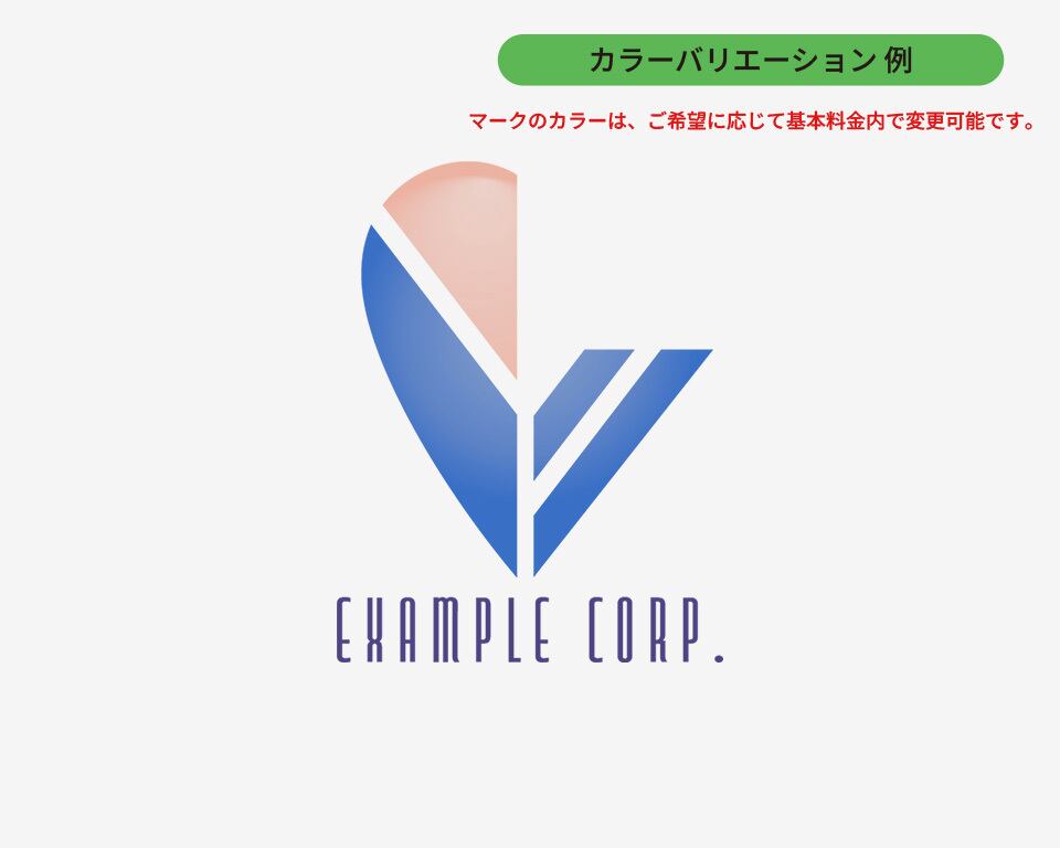 ピンクとブルーのグラデーションが美しい、抽象的なハートとV字を組み合わせたロゴです。柔らかなピンクは優しさや愛情、鮮やかなブルーは知性や革新性を表現しています。重なり合う形状は、繋がりや協調性を象徴し、洗練された印象を与えます。