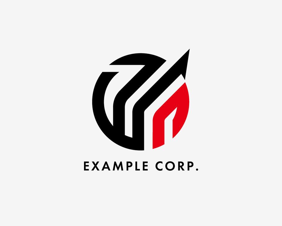 黒と赤のコントラストが際立つ、円形と複数のシャープなラインを組み合わせた抽象的なロゴです。円の一部を切り裂くような赤いラインは、革新性や突破力を表現し、全体としてダイナミズムと進歩を感じさせます。未来的でテクノロジー志向な印象を与えます。