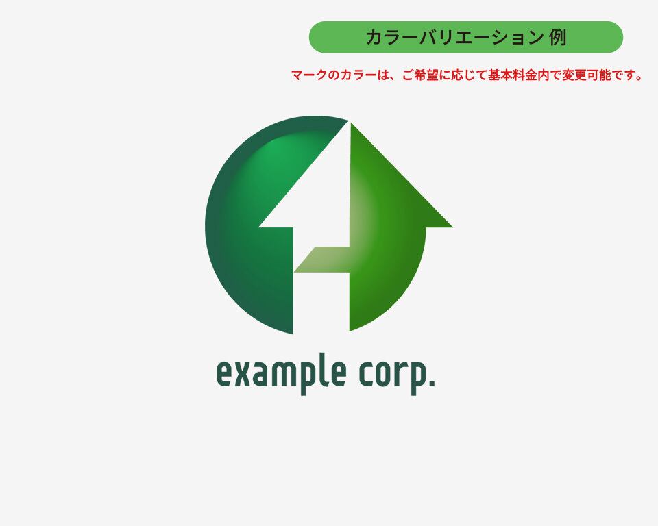 青と緑の矢印が円の中で組み合わさり、屋根と壁を連想させる家の形を形成しているユニークなロゴです。青色は信頼感と安定感を、緑色は成長と安心感を象徴しています。円の形状は調和と繋がりを表し、住まいに関わる事業に、現代的で進歩的な印象を与えます。