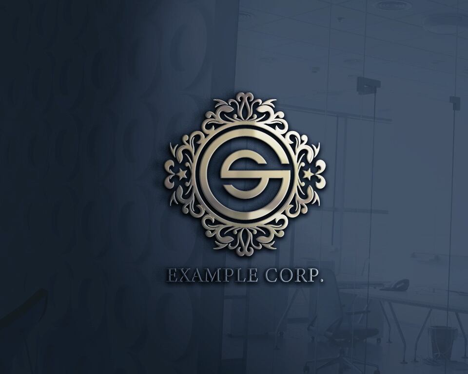輝く黄金の装飾フレームに囲まれた、スタイリッシュなGとSのモノグラムロゴです。流れるような曲線と緻密な装飾が、洗練さと高級感を演出します。歴史的な雰囲気も感じさせ、プレステージを高めます。