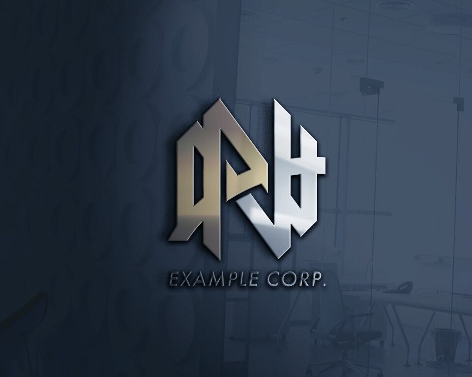 輝く金色と落ち着いた銀色のメタリックな質感を持つ多角形を組み合わせた、抽象的で未来的なロゴです。シャープなラインと複雑な形状は、イノベーションと洗練を象徴し、プロフェッショナリズムと現代性を感じさせます。