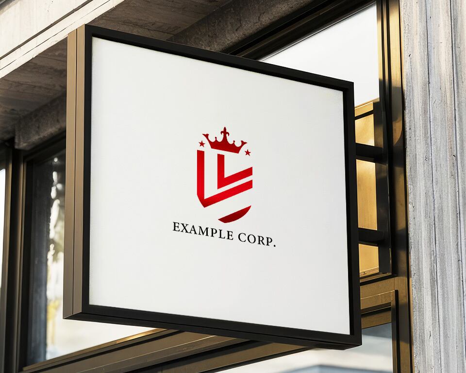 深い赤色の盾の形状に、同じく赤い王冠と星を組み合わせた、プレステージの高いエンブレムロゴです。シャープなラインと対称的なデザインは、権威と品質を感じさせます。法務、金融、高級ブランドなどの分野に最適です。
