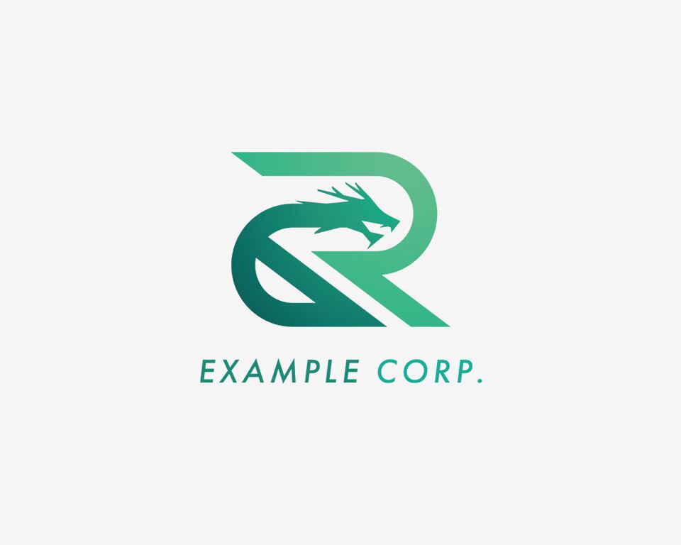 緑と青のグラデーションで表現された、力強く躍動感のあるドラゴンの頭部とGRの文字を組み合わせた「躍動感あるドラゴンヘッドGR」ロゴ。革新性、力強さ、そして神秘的な印象を与え、IT、ゲーム、エンターテイメントなど、独創性を求める業種に最適です。