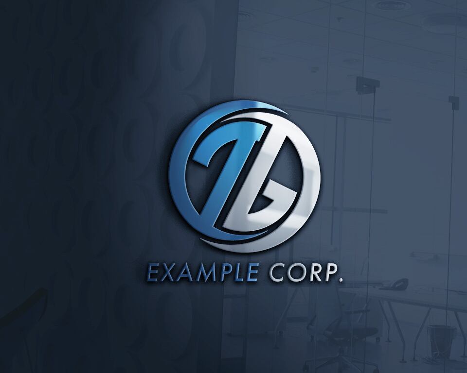 青とシルバーのメタリックな質感で、球体の中にSとGを組み合わせたスタイリッシュなロゴ。先進的でプロフェッショナルな印象を与え、IT、テクノロジー、コンサルティングなど、信頼性と革新性を求める業種に最適です。