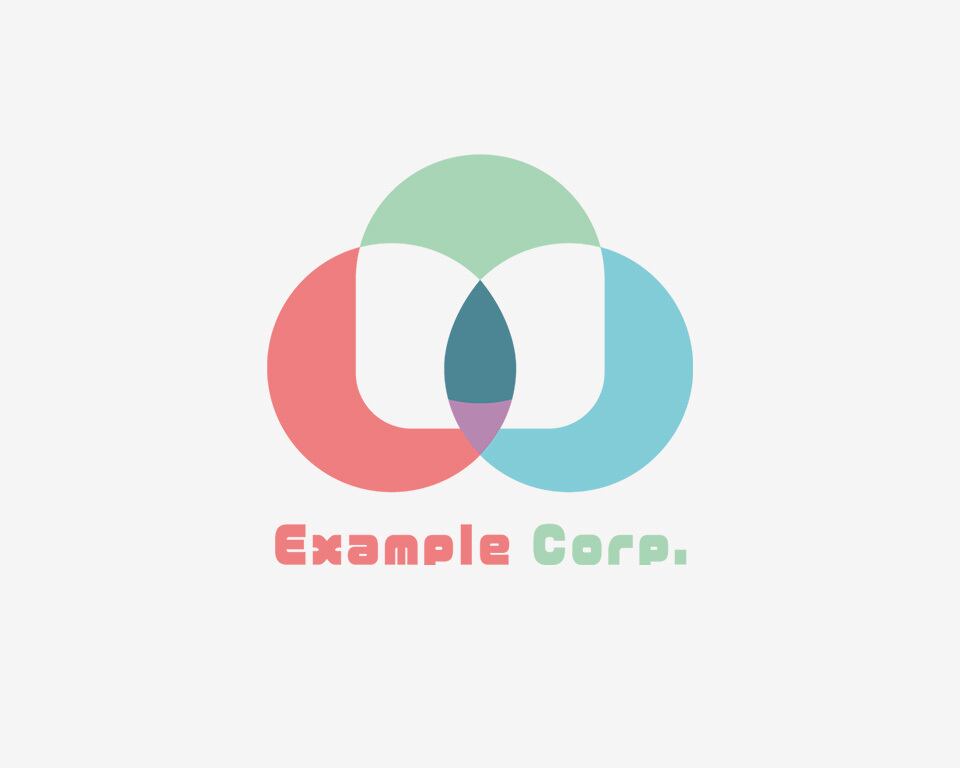 ピンク、水色、黄緑の柔らかな色合いの円が重なり合う、親しみやすく創造的な印象のロゴ。色の濃淡が奥行きを生み出し、アート、デザイン、教育関連など、柔軟な発想を大切にする業種に最適です。