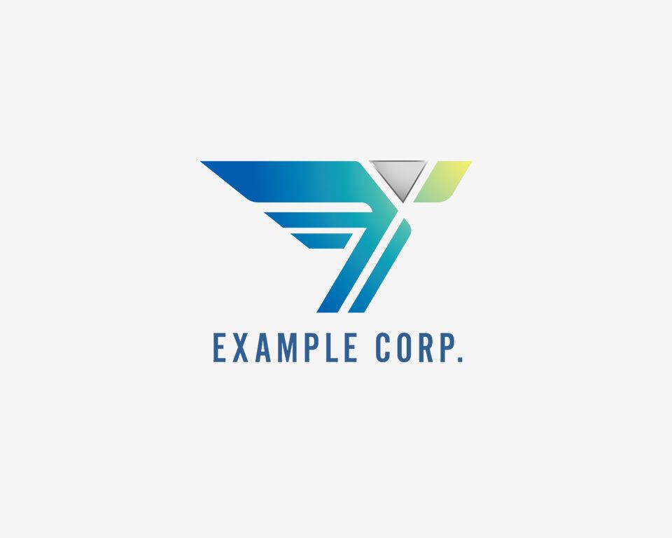 青から黄緑へのグラデーションが美しい、翼のような抽象的なロゴ。スピード感、自由、そして革新性を表現し、IT、航空、クリエイティブ関連など、先進的なイメージを求める業種に最適です。