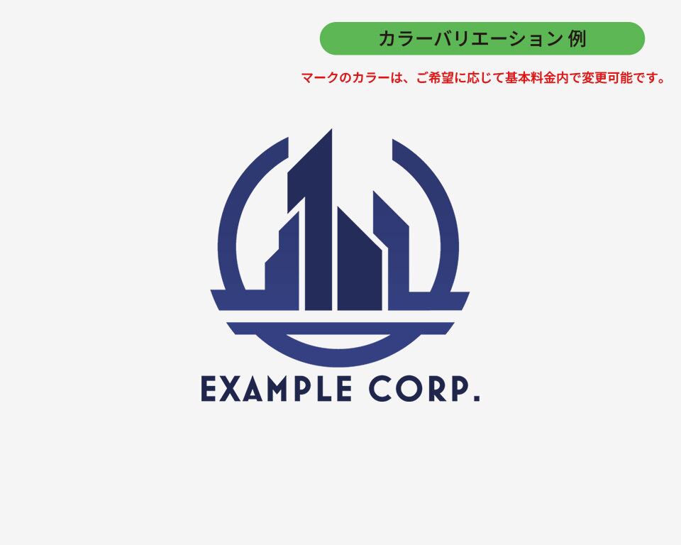 厳選されたプリメイドロゴをベースに、あなたのビジネス名・サービス名を組み込んだオリジナルロゴをお届けします。