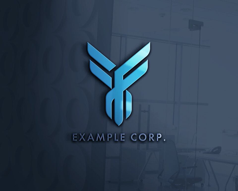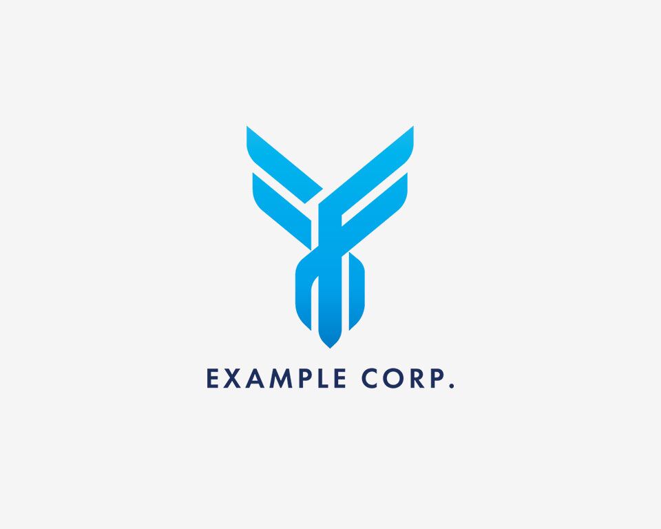 青色のグラデーションで表現された、抽象的なDouble Fのロゴ。先進性、力強さ、そして信頼性を表現し、IT、コンサルティング、金融関連など、プロフェッショナルなイメージを求める業種に最適です。