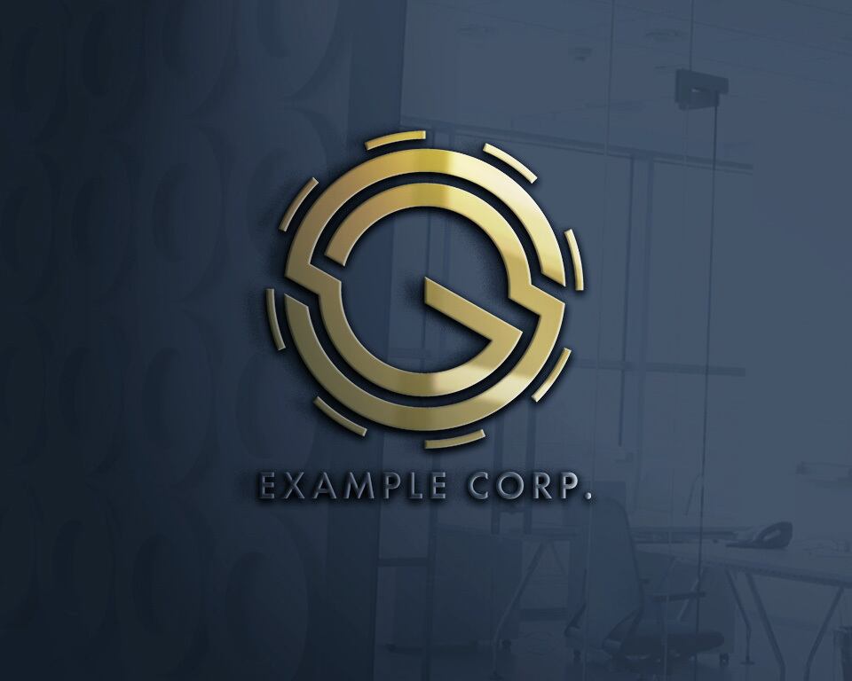 金色のグラデーションで表現されたGの文字を、歯車のような円形のフレームで囲んだ、インダストリアルで力強いロゴ。テクノロジー、製造業、コンサルティングなど、専門性と信頼性を求める業種に最適です。