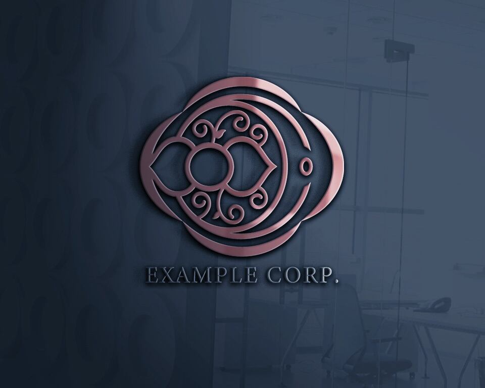 深い朱色で描かれた、伝統的な和柄をアレンジしたような文様のロゴ。中央の円と周囲の曲線が調和し、力強さと洗練された美しさを感じさせます。伝統工芸、文化、飲食関連など、本格的で上質なイメージを求める業種に最適です。