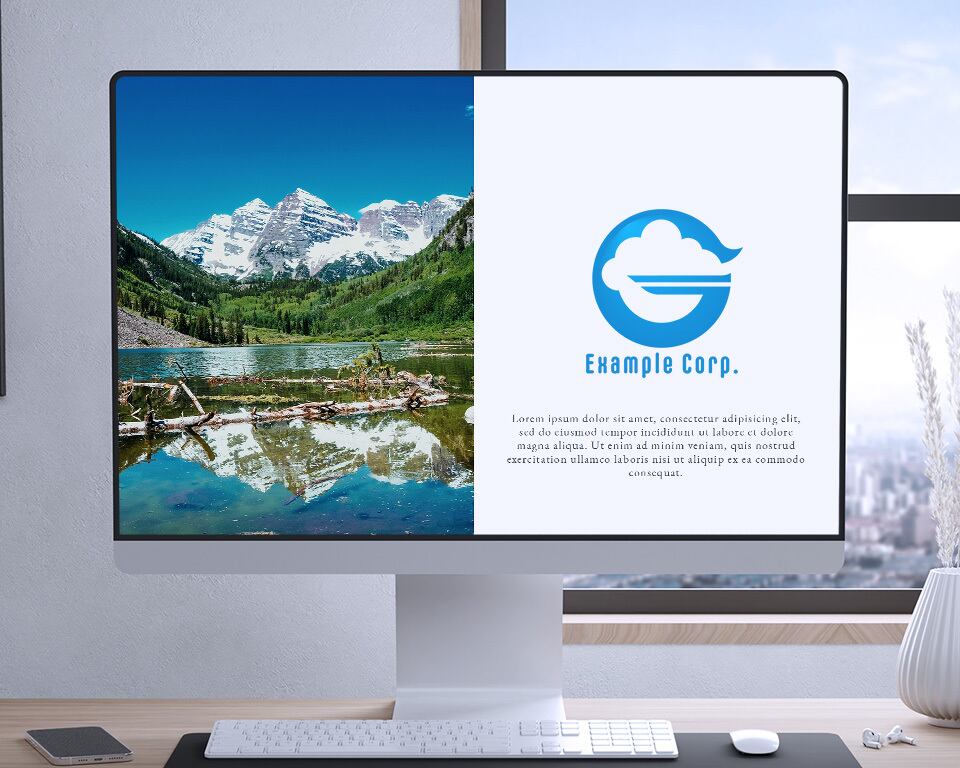 青色のグラデーションでGの文字を表現し、雲のようなモチーフと組み合わせた、親しみやすく現代的なロゴ。IT、テクノロジー、環境関連など、クリーンで信頼できるイメージを求める業種に最適です。