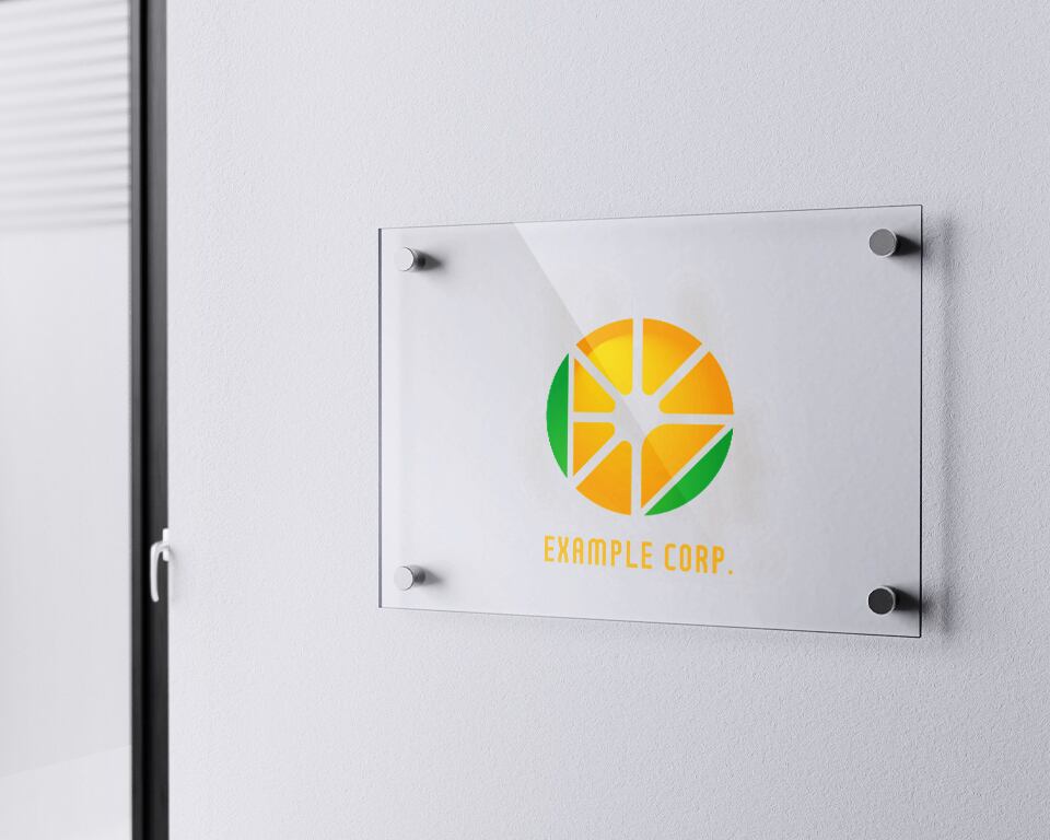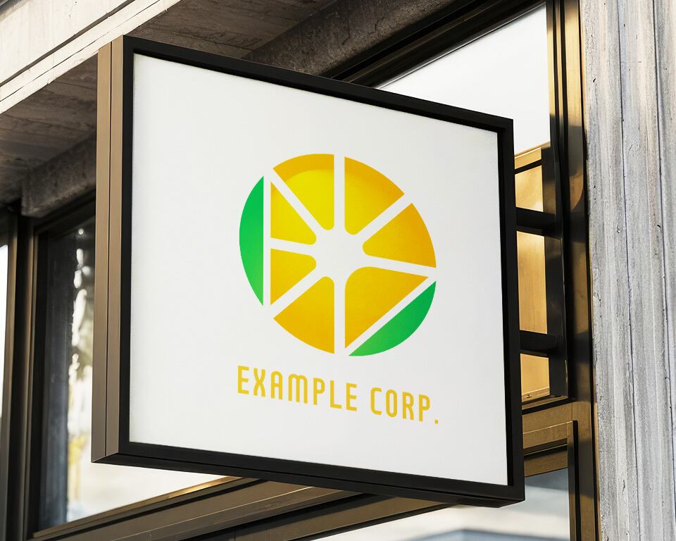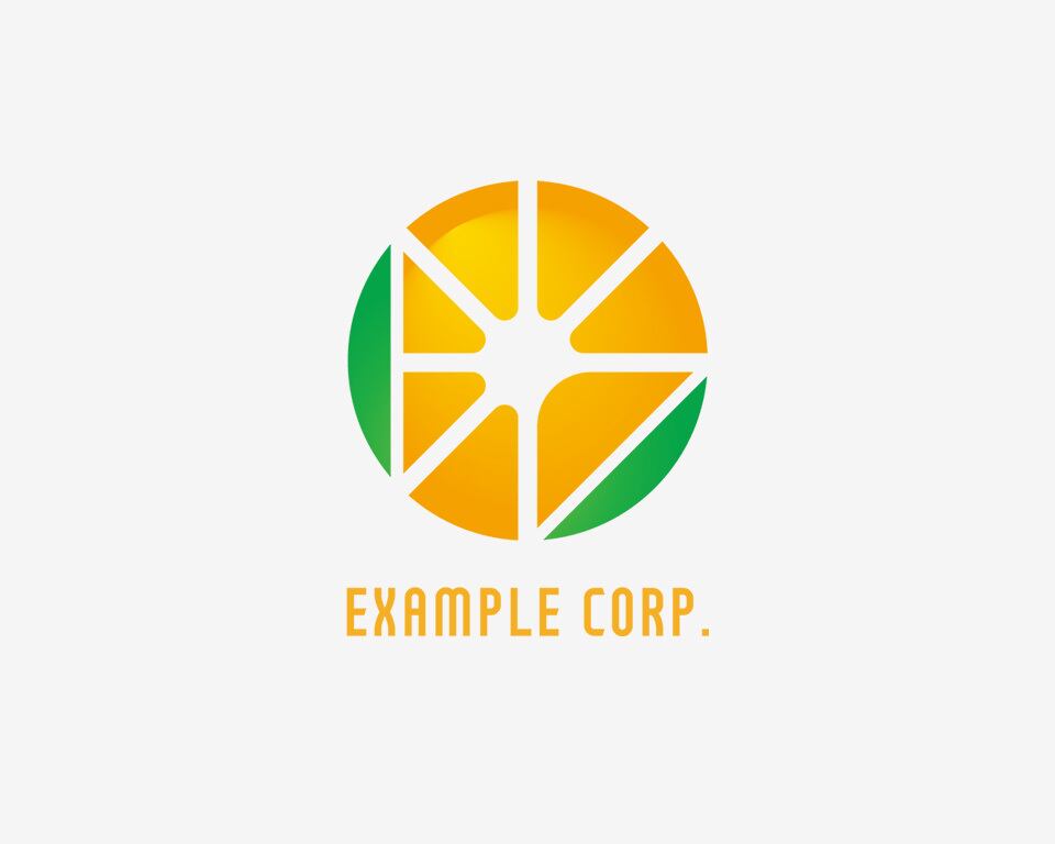 オレンジと黄色のグラデーションで表現された円と、緑色のパーツが組み合わさり、太陽やオレンジのスライスを思わせる、フレッシュでエネルギッシュなロゴ。飲食・フード関連、農業、エンターテイメントなど、明るく活気のあるイメージを求める業種に最適です。