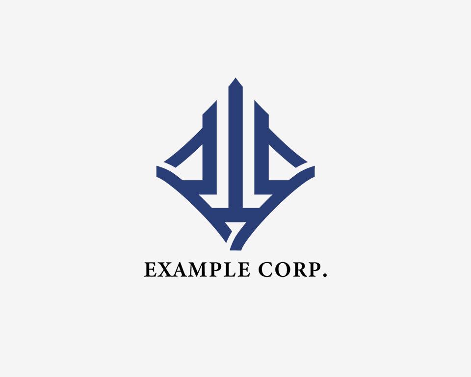 紺色のシャープなラインで構成され、建物や紋章のような厳かさを感じさせるロゴです。和風の要素とモダンな印象が融合し、伝統と革新を表現しています。信頼性や安定感を重視する企業に最適なデザインです。